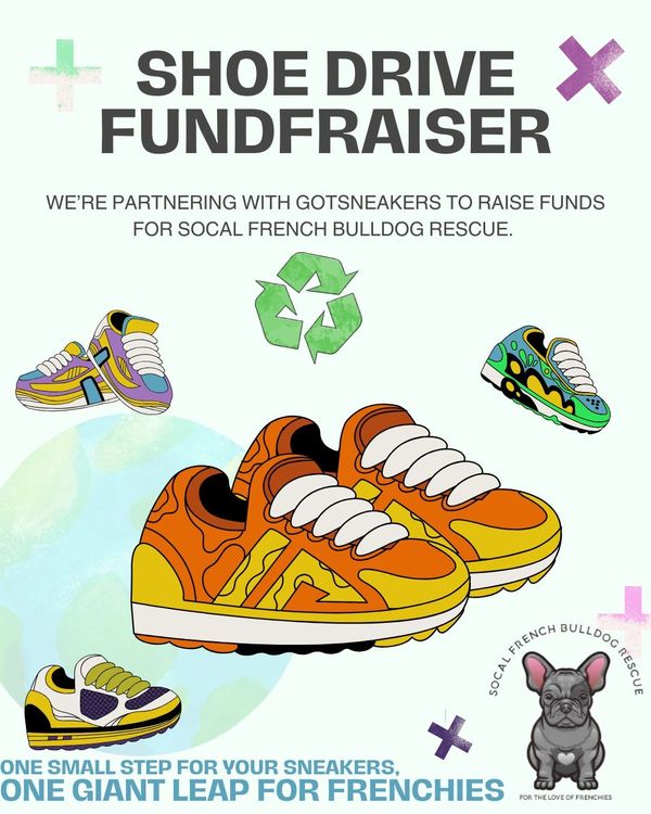 SoCal French Bulldog Rescue is holding an athletic shoe drive in partnership with GotSneakers to raise money for Frenchies in need.