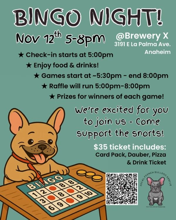 We’re taking over @brewery_x in Anaheim for a night of fun, laughs, and prizes — all for the love of Frenchies.